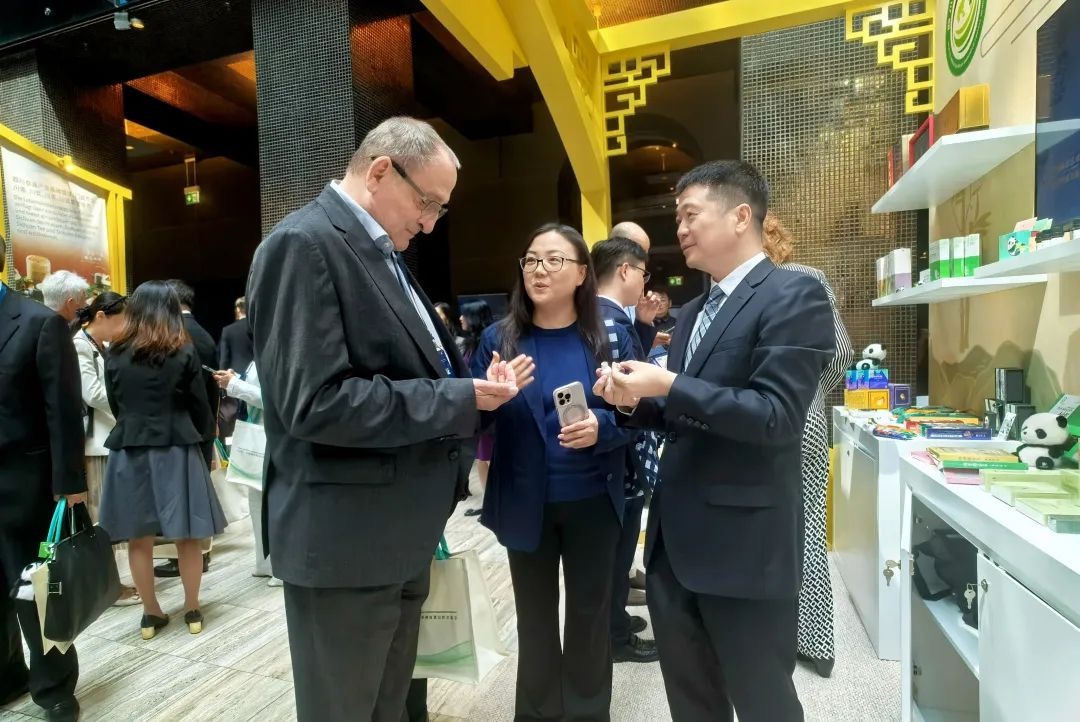 游勇向德国AVIAREPS公司负责人介绍集团情况和文创产品、精品旅游线路产品