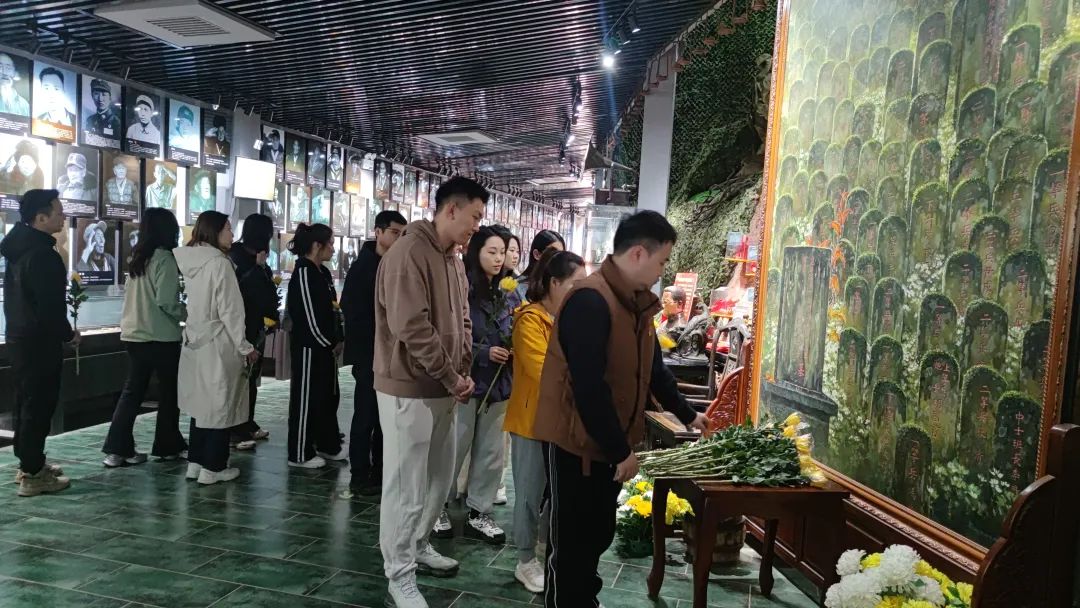 青年们走进眉山征程文化交流中心,,,,,,,以重温入团誓词、默哀、献花等方式,,,,,,,缅怀烈士、寄托哀思、致敬英雄。。。。。在讲解员的引导下,,,,,,,大家认真观看了展馆陈列的抗战时期历史资料和物品,,,,,,,重温了眉山籍抗战老兵参加抗日战争的历史,,,,,,,真切感受到革命先烈坚定信念、不屈不挠、顽强拼搏的革命精神。。。。。